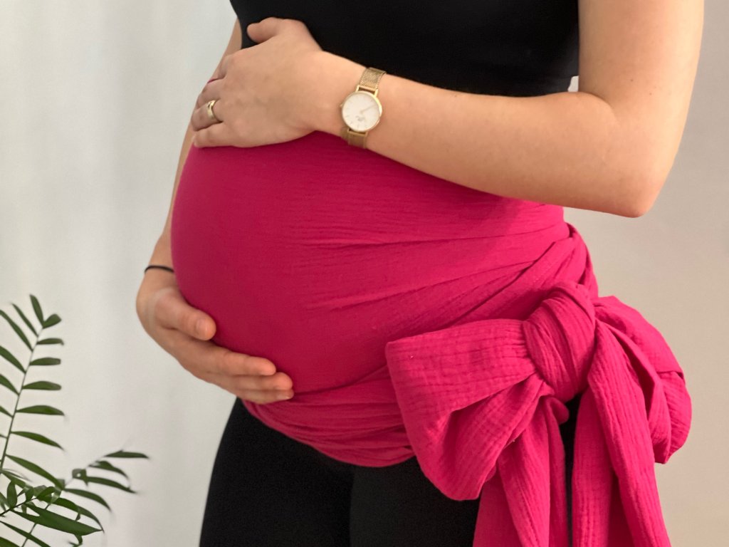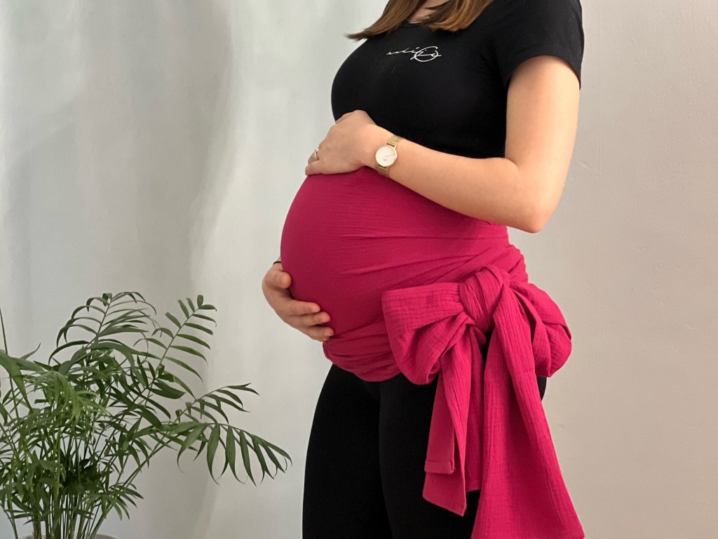 šátek poskytuje jemný pocit opory rostoucímu bříšku, což může přinášet větší komfort při nošení