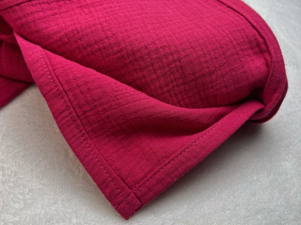 Mušelín je jemná bavlněná tkanina, proto doporučujeme šetrné praní do 30 °C na jemný cyklus. Nepoužívejte aviváž, bělidla ani sušičku – šátek si tak uchová svou hebkost i barvu. Perte jej ideálně s podobně barevným prádlem.