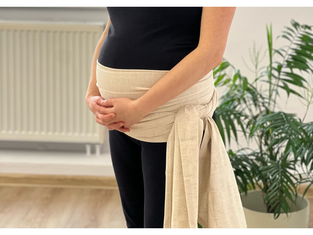 Bavlno-lněný zavinovací šátek - originál přírodní, ručně šitý, Délka/šířka: 500 x 48 cm. Pevná opora pro ženy v těhotenství i po porodu, doporučený pro konfekční velikost 46 a více.
