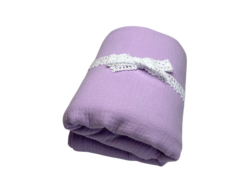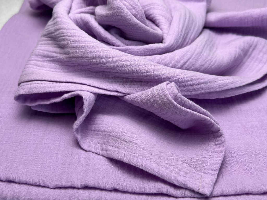 Bavlněný zavinovací šátek - mušelínový, v originál světle fialové barvě je lehký, prodyšný, vhodný zejména pro podporu bříška v letním období. Délka/šířka: 500 x 35 cm.Jemná opora pro ženy v těhotenství i po porodu, doporučený pro konfekční velikost 42–48.