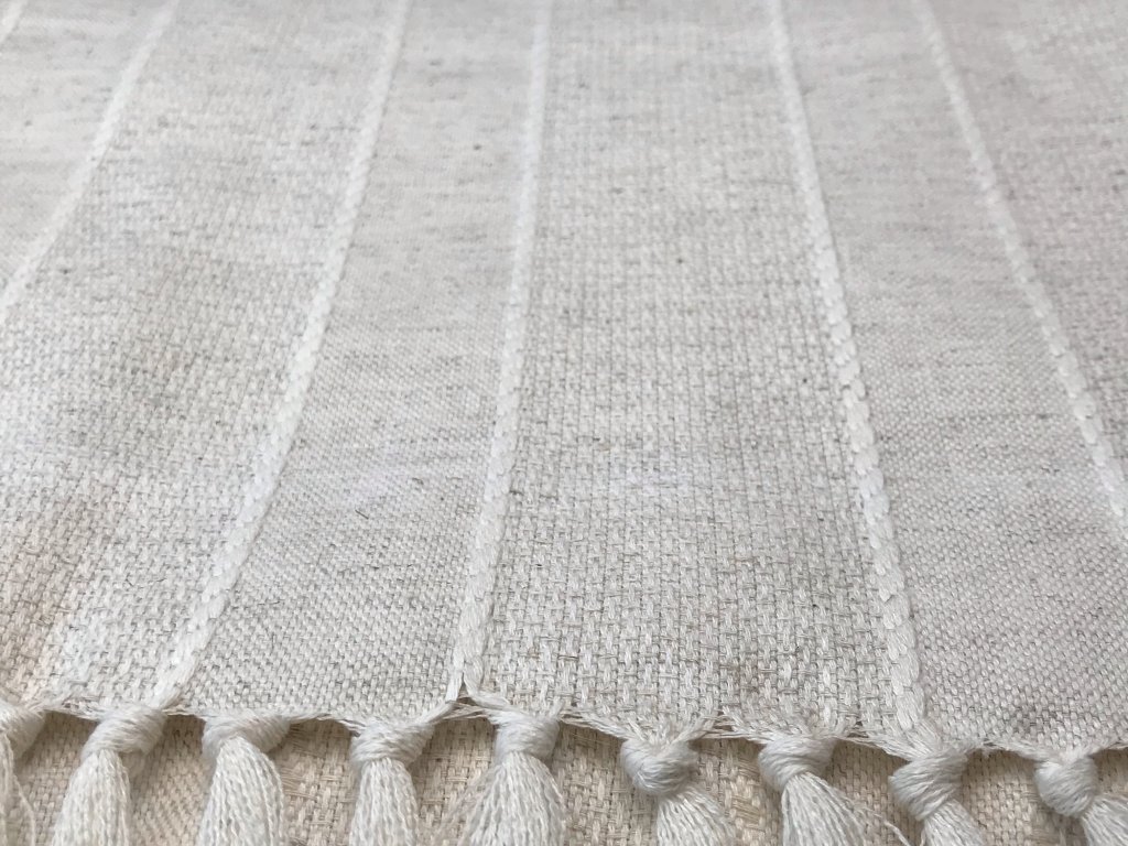 Tato přírodní látka je vyrobena v České republice, tkaná z vysoce kvalitních bavlněných přízí s příměsí lnu, je nebělená a sanforizovaná (vysrážená - zbytková srážlivost do 7%).